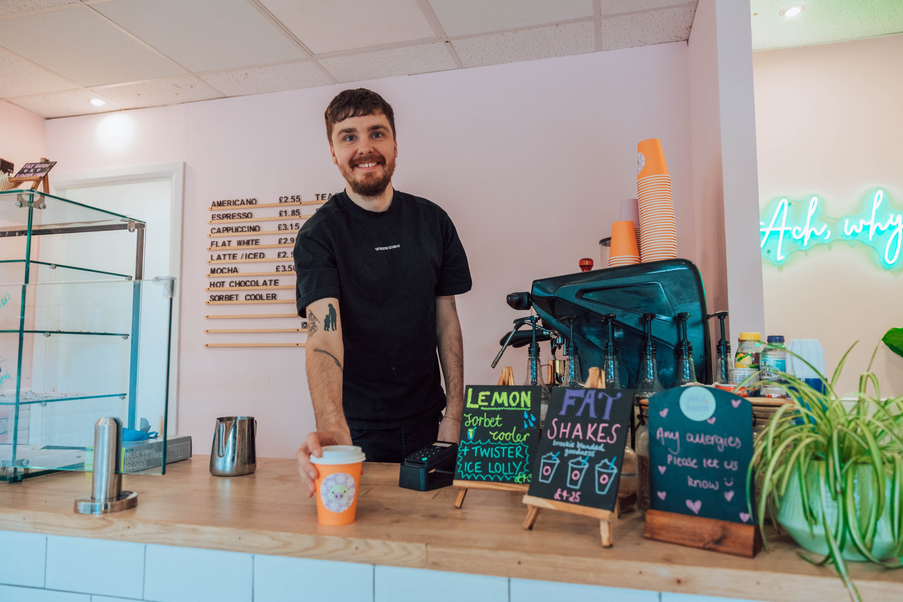 To complement our baked goods, we also offer a range of freshly brewed coffee drinks, from classic espresso shots to creamy lattes and indulgent mochas. If you want a cold treat you can’t go wrong with one of our freshly blended sorbet coolers topped off with an ice lolly because why nae! Our baristas are passionate about coffee and always strive to deliver the perfect cup, no matter what your taste or preference.