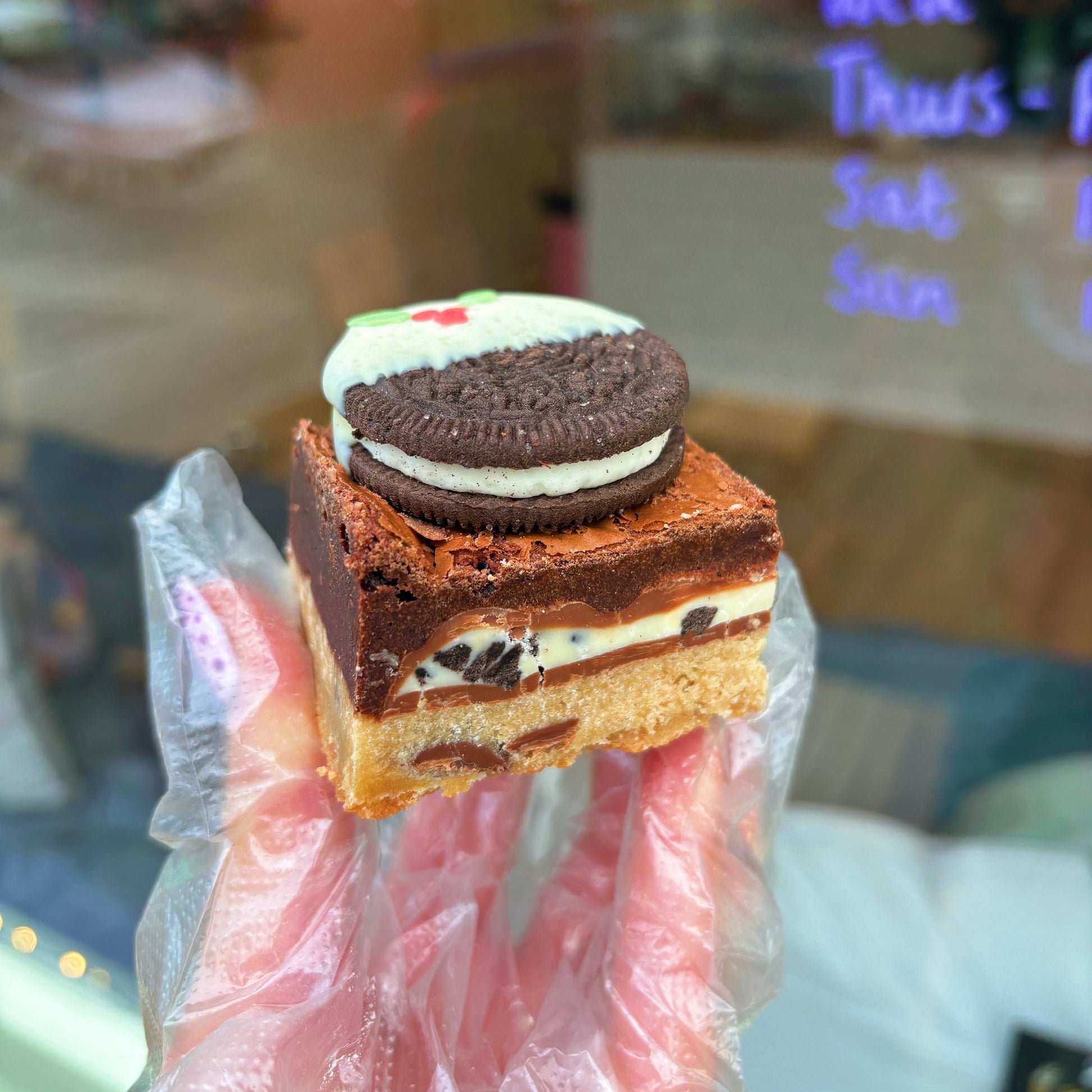 🎄 Cookies & Cream Brookie - topped with a Oreo dressed up as a Christmas pudding